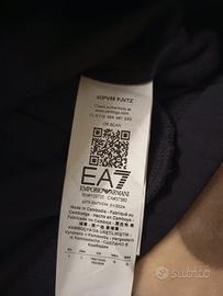 Completo tuta EA7 da uomo, composto da felpa con cappuccio e pantaloni, taglia L - Felpa con zip frontale e cappuccio. - Pantaloni con elastico in vita e alle caviglie. - Logo EA7 visibile sul petto e sulla gamba. Prodotto nuovo con cartellino.