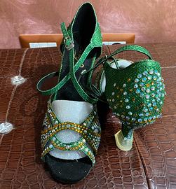 Coordinato scarpe mai usate in verde smeraldo e Swarovski tg 37.