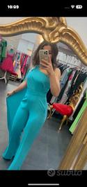 Jumpsuit elegante da cerimonia con strascico posteriore mono spalla e a gamba dritta impreziosita con pietre luccicanti taglia 40 non molto elasticizzata nuova con cartellino comprata su rossetti fascion a 169 euro