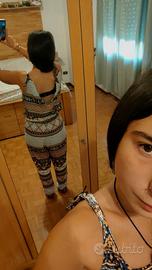 Tuta larga e lunga con bottone per chiusura posteriore