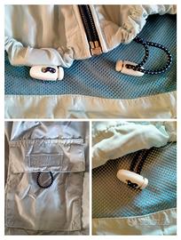 •apertura con zip, cappuccio con corda elastica e morsetti regolatori