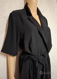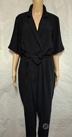 Tuta elegante H&M in colore nero. Perfetta per diverse occasioni. - Scollo a V con revers. - Cintura in vita con fiocco regolabile. - Maniche corte. - Gamba dritta.