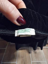 Tuta Benetton, in morbidissima ciniglia, pantaloni palazzo con tasche laterali, maglia con cappuccio, color nero: pantalone in tessuto liscio, maglia con deliziosa lavorazione a fiori.