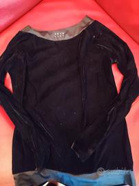 tuta un ciniglia nera da donna tg M con bordi in raso e strass sul colletto pantaloni a vita bassa
