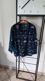 Comodo set made in Italy composto da maglia e pantaloni in pile, con una divertente fantasia a tema gregge e casette. Taglia s.