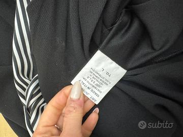 Vendo tuta intera Jene colore nera taglia L; presenta un lato a giro manica e l altro lato a manica lunga, sfondo bianco con righe nere, scollo a V e cerniera posteriore, nuova e vestibilità morbida