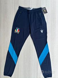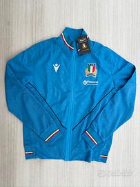 Tuta completa tecnica sportiva leggera da gioco traspirante Felpa con zip + Pantaloni con apertura laterale e tacshe Macron Italia Rugby.