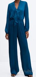 Tuta jumpsuit elegante blu satin nella taglia M. Articolo nuovo con cartellino, mai indossato.