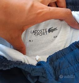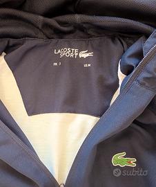 vendo tuta lacoste completa taglia M la tuta e praticamente inutilizzata perché mi sta troppo grande, ricevuta come regalo di compleanno. le tasche zip della felpa sono da aggiustare perché la cerniera va ma non chiude la tasca mentre il pantalone apparte quel buchino piccolo non presenta problemi.