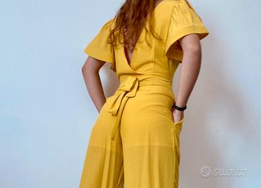 Tuta in cotone giallo con pantalone palazzo e maniche a campana. Comoda leggera e “stilosa”. Indossata una sola volta….super occasione per eventi divertenti!