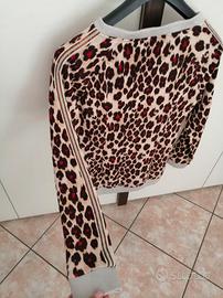 Morbidissima Tuta di Liu Jo, felpa taglia S con paillettes lungo le maniche e tasche a scomparsa laterali, da portare lunga o rimborsata. Pantaloni taglia M. Vendo anche singolarmente pantalone € 35 e felpa € 35. Messa pochissime volte perché non amo indossare capi maculati. Comprata perché molto calda, morbida e confortevole.