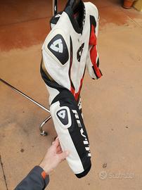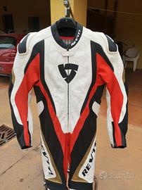 Vendo stupenda tuta da moto da uomo in pelle intera marca rev'it taglia 48 colore bianco nero rosso e oro. La tuta è pari al nuovo. Traforata. Interno estraibile con cerniera e lavabile. 2 tasche interne. Tutti i prezzi indicati (330euro) sono COMPRENSIVI di spese di spedizione ma non sono trattabili. Tra i miei annunci trovate altre tute di varie taglie e marche. Giacche giubbotti abbigliamento.
