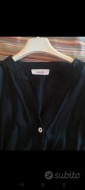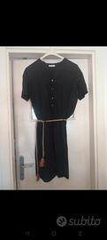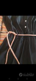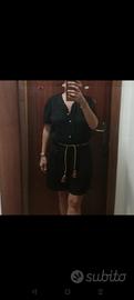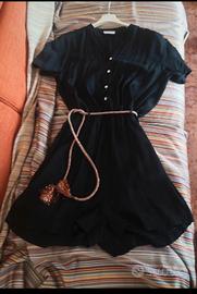 Vestito con pantaloncino, cotone misto seta (etichetta tagliata ma si sente dalla morbidezza) manica corta, collo alla coreana, bottoncini. Elastico in vita con passanti e cintura in corda dorata. Due tasche laterali. Ottime condizioni