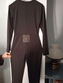 Elegante tutina nera con dettagli luminosi.