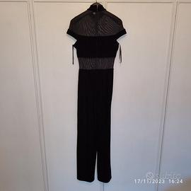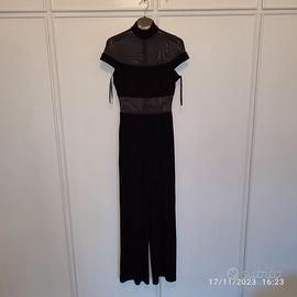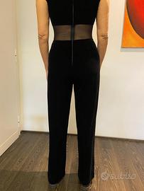 Vendo tuta in velluto elasticizzato ed inserti in tulle, marca Caché, indossata solo due volte, in ottime condizioni, colore nero, ottime rifiniture, morbida, leggera ed elegante. Misure in cm: lunghezza 153, spalle 37, cavallo 76, larghezza 25, taglia USA 6, corrispondente alla 42/44 italiana. Vero affare. Se vuoi altre foto chiedile.