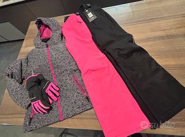 Giacca e pantalone rosa, + guanti e doposci misura 35