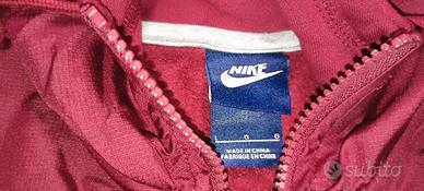 Tuta sportiva NUOVA completa (felpa + pantalone) NIKE rosso bordeaux (bordò) con cappuccio - Taglia L