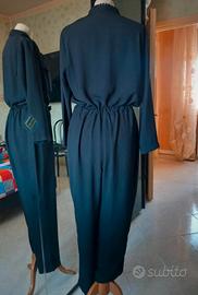 NUOVA colore nero taglia 44 maniche lunghe collo a camicia due taschini laterali chiusura con bottoni cinta in vita. (4)