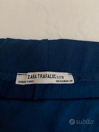 Tuta plissettata in poliestere, due pezzi. Maglia con manica leggermente a sbuffo sul braccio che si restringe sull’avambeaccio. Pantalone comodo con elastico in vita. Usata una volta.