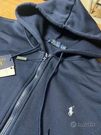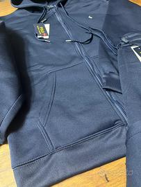 Completo sportivo Polo Ralph Lauren. - Felpa con cappuccio e zip. - Pantalone coordinato. - Logo cavallo ricamato. Colore: Blu Scuro / Navy (elegante e facilissimo da abbinare). • Taglia: L (vestibilità slim). • Dettagli Felpa: Chiusura con zip integrale, cappuccio regolabile e l'iconico cavallo bianco ricamato sul petto. • Dettagli Pantalone: Vita elasticizzata, polsini alle caviglie e logo ricamato. • Tessuto:morbido, morbidissimo al tatto e perfetto per tutte le stagioni.