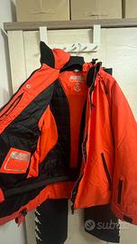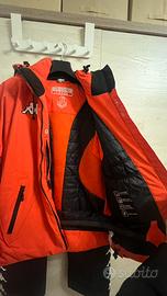 Tuta da sci due pezzi: pantaloni con bretelle taglia M e giacca arancio taglia L come in foto. Avviso cerniera rotta sulla giacca quindi da rifare (anche dai cinesi). Unico difetto altrimenti come nuova.