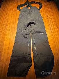 Il pantalone (con bretelle elastiche regolabili + straps per registrazione girovita) prevede due tasche classiche sul davanti (cerniere) + due tasche frontali altezza ginocchio (cerniere) + due cerniere posteriori altezza ginocchio + nr.2 cerniere sulla parte bassa per gli scarponi.