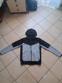 tuta sportiva nera e grigia con tasche laterali. fine della manica un pó rovinato