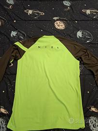 Tuta completa nike con parte superiore dri-fit, interno completamente in pile sia lato petto che lato schiena. Mezza zip anteriore, colore verde acido, e maniche in grigio antracite. Taglia M. Nuovo con cartellino