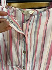 Tutina bambina a righe lilla, rosa e bianco, con elastico in vita. Comoda, colorata e perfetta per l’estate.