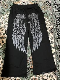 Felpa con cappuccio e pantaloni della tuta coordinati con l'iconica grafica delle ali d'angelo sul retro della felpa e sulle gambe. Vestibilità comoda XL, realizzata in morbido misto cotone e poliestere, perfetta per lo streetwear quotidiano e per outfit casual.