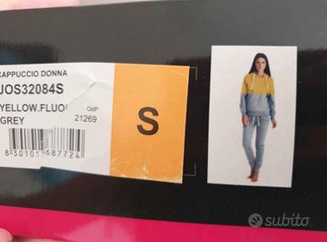 Bellissima tuta Umbro donna color giallo fluo e grigia, con cappuccio. Taglia S. NUOVA, con etichetta e scatola.