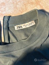 Vendo tuta intera ZARA, taglia S, colore verde oliva. Realizzata in tessuto elasticizzato a costine, ha maniche corte e pantaloncino corto con elastico in vita per una vestibilità comoda e pratica ✨
