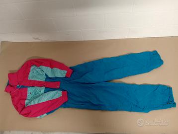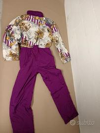 Taglia 46 la tuta bianca e viola e taglia 48 la tuta azzurra e rosa.