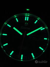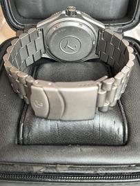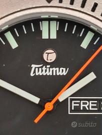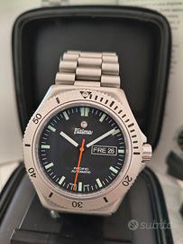 Raro Tutima 677 Military Diver 43 mm full-set originale da collezione, il modello 43 mm è raro vintage e fuori produzione, grazie al lug to lug di soli 45 mm e allo spessore di soli 12 mm veste su tutti i polsi. Mai usato ma già revisionato a Monaco il 15/05/2025. Scatola, controscatola, garanzia, libretto, fattura revisione, mai messo a misura. Condizioni: come è uscito dalla fabbrica, 10/10, mint condition. Funzionamento eccellente. Movimento Eta 2892 top grade modificato Tutima. Vendo al prezzo indicato, valuto scambio solo con Tutima 750-02, o con Sinn IWC Bell&Ross Guinand Heuer Autavia Di pari valore e mio gradimento. Preferito lo scambio a mano o spedizione tramite corriere privato ma anche tramite spedizione gestita da Subito.