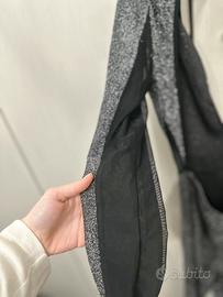 vendo stupenda tutina intera Shein, maniche lunghe e pantalone lungo, con scollo a V e schiena scoperta per un effetto super femminile! Dettagli in pizzo e tessuto glitterato che illumina tutta la figura. Taglia XS ma veste comoda (più simile a una S). Indossata una sola volta, perfetta per feste, capodanno o serate eleganti.