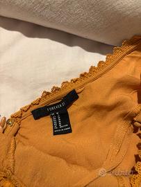 Tutina intera estiva donna FOREVER 21 ,tg.M . Struttura unica . Colore senape . Condizioni buone , nessun difetto . Disponibile ad inviare altre foto o informazioni .