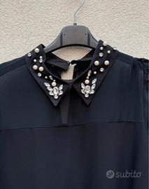 Tutina nera a pantaloncino con cintura inclusa Impreziosito sul colletto rimovibile Veste una m/l
