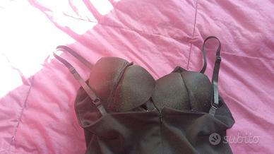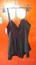 disponibile una tutina corta nera, con bretelline regolabili, coppe per il seno, ferretto a "V" con scollatura, modello con finta gonna, con lampo dietro la schiena. Taglia M. E' usata ma in perfette condizioni. Non presenta strappi, macchie o falli. Prezzo 8 euro. Spedizione a carico del compratore, non inclusa nel prezzo, per info scrivetemi in privato, grazie.