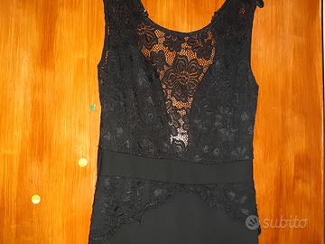 Disponibile una tutina nera a pantalone lungo, con ricamo in pizzo sul seno e trasparenze, chiusura con lampo sul fondo schiena e bottoncino dietro il collo, modello aderente, senza coppe, taglia M (44), misura dalla spalla 140 cm, è usata ma in ottime condizioni. Non presenta strappi, falli o macchie. Prezzo 10 euro. Spedizione a carico del compratore, non inclusa nel prezzo, per info scrivetemi in privato, grazie.