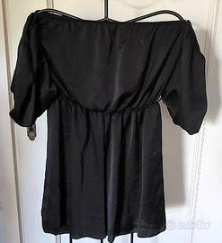 Tutina pantaloncini nera maniche corte scollo elasticizzato senza spalline tessuto nero leggero ZUIKI taglia M Usata pochissimo in buono stato