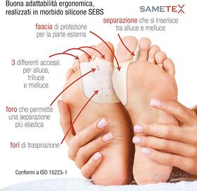 Tutore Alluce Valgo - 4 pezzi Sametex® - Tutore Alluce Valgo - 4 pezzi - 2 modelli - Correttore Alluce - Protezione Dolore Borsite - Raddrizza Dita e Divaricatore - Morbido Silicone Certificato.