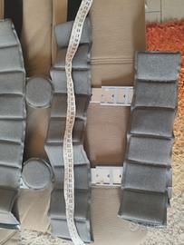 4 fasce di cui uno sopra coscia uno sopra al ginocchio uno sotto al ginocchio e uno sulla caviglia. le misure delle fasce sono quelle in foto così da controllare se sono adatte alla vostra gamba viso che le fasce sono state regolate alla mia. Si possono ulteriormente accorciare( tagliandole) qualora abbiate una gamba più sottile.