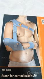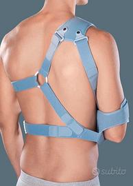 Tutore per spalla destra: stabilizzante universale per lussazione e stabilizzazione acromion-claveare con sistema di cinghie e tiranti concepito per spingere la clavicola verso il basso e l'omero verso l'alto e riallineare acromion e clavicola. La patella clavicolare è flessibile e anatomica, possiede un'imbottitura in polietilene espanso, con snodi rotanti, tiranti anteriori a tensionamento costante e pre-regolato. La tasca gomito è regolabile e garantisce il massimo comfort grazie all'imbottitura in polietilene espanso. E' inoltre dotato di cinturone toracico e cinghie in velour tagliabili a misura. Colore Azzurro.