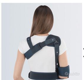 ARTICOLO ORIGINALE F. G. P. ALTA QUALITÀ STRUTTURA BASE • spallina principale in vellutino imbottita e modellata dotata di sistema di tensionatura contemporanea e contrapposta con cinghie regolabili e fibbie autoadattanti • fascia regolabile sottoascellare per la ridistribuzione del peso • cintura addominale a strappo con chiusura regolabile STRUTTURA SACCA REGGIBRACCIO • in tessuto tridimensionale dalla struttura alveolare leggero e traspirante, con zona grippante nella regione del gomito • fascia di rinforzo alla base • anello d’ancoraggio per il pollice • cinghia di sostegno del polso STRUTTURA CINGHIAGGIO • fasce in vellutino ritagliabili con fissaggio tramite linguette a strappo con pinzetta numerata • sistema di fissaggio ad anello NOTE • la numerazione delle fasce a strappo di chiusura facilitano la prima applicazione da parte del tecnico ortopedico o del medico INDICAZIONI • trattamento conservativo o post operatorio delle lussazioni acromion claveari • trattamento post operatorio delle fratture dell’estremo laterale di clavicola MISURE Misura per braccio sinistro Taglia lunghezza avambraccio M 33-40 cm