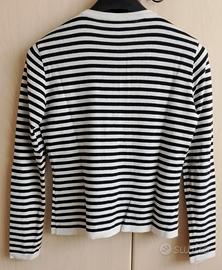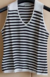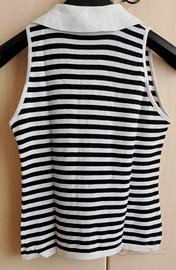 Twin set a righe, ALPHA di Massimo Rebecchi, made in Italy, nero e crema, composto da maglietta con bottoni sul davanti, maniche lunghe e scollo rotondo e canotta scollo polo con giromaniche. Taglia S, 100%cotone, indossata pochissimo.