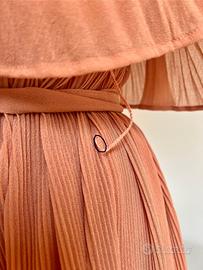 Abito corto di Twin Set in leggero tessuto plissettato color rosa cipria, con sottogonna in tulle beige chiaro.