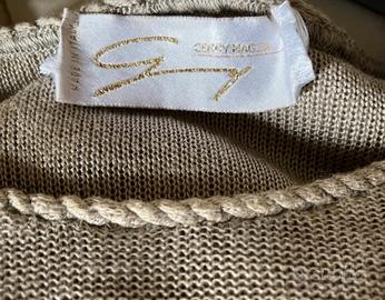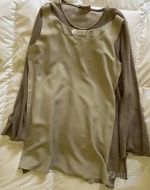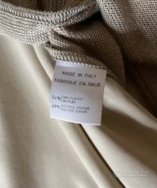 Maglia in filo di lino e viscosa colore ecru, con spacchi laterali, abbinato a canotta in seta dello stesso colore, taglia 44.