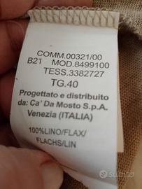 Twin Set Seventy lino. giacca lunga con scollo seta e ricami. Sotto canotta ad incrocio scollo V.