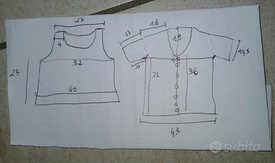 Elegante twinset composto da una canottiera (sotto) e un "maglioncino" a manica corta (sopra) con scollo a V e 6 bottoni sul davanti;