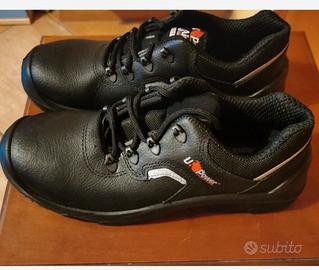 Calzature da lavoro protettive professionali firmate U-Power. Scarpe antinfortunistiche basse con tecnologia Airtoe Composite per massima sicurezza. Brand: U-Power Colore: Nero con dettagli arancioni e bianchi Condizione: Ottime, suola intatta e tomaia senza segni di usura evidenti Perfette per abbigliamento tecnico da lavoro e sicurezza sul cantiere.